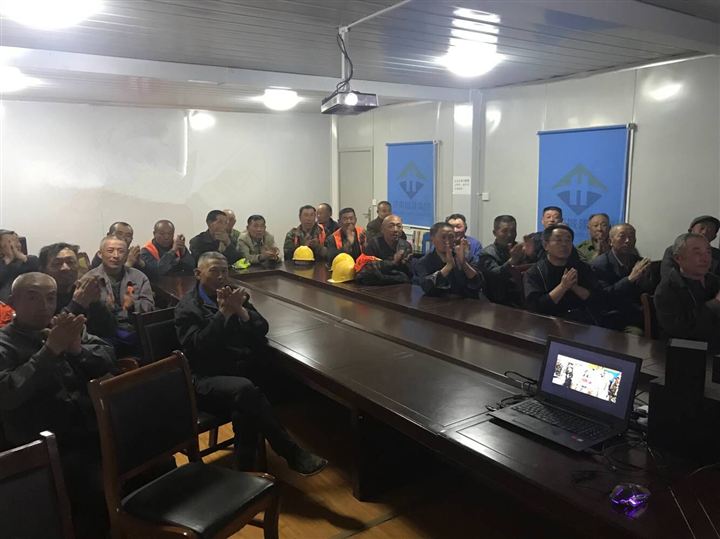 落日余暉剛剛消散,忙碌了一天的工人們也剛剛吃過晚飯,便相邀結隊地走進了項目部會議室,原來是匯通公司工會分會、團支部為豐富大家工作之余的文化生活,倡導健康、文明的生活理念,聯合舉辦的“關愛農民工,電影進工地”活動于2019年3月26日來到了西沙東路項目部。本次活動為農民工們放映的影片是《中國藍盔》,作為中國首部維和軍事題材電影,影片講述了當下中國維和部隊官兵在非洲堅決執行習主席指示的“構建人類命運共同體”的大國方針,該影片通過講述維和部隊官兵在海外執行維和任務中發生的感人故事,從視野上更體現出了中國軍人的大格局和大擔當,他們以自己的實際行動彰顯了中國“愛和平、負責任”的大國風范?!斑@電影不孬!”