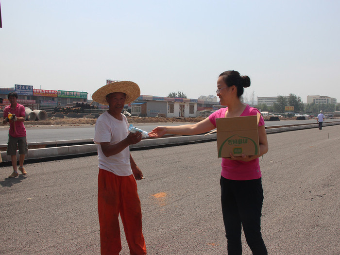 5月30日上午,五分公司辦公室人員帶著對高溫環境下作業勞動者的深情關愛,將一批防暑降溫慰問品送到一線職工手中,“關愛職工夏送清涼”—防暑降溫慰問活動正式啟動。在施工現場,揮汗如雨的工人們正在緊張地進行底面層攤鋪,辦公室人員向一線職工和勞務工人們一一送上雪糕和防暑飲料。給工人們送上一份清涼,也送去一份關心和問候。