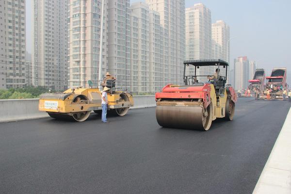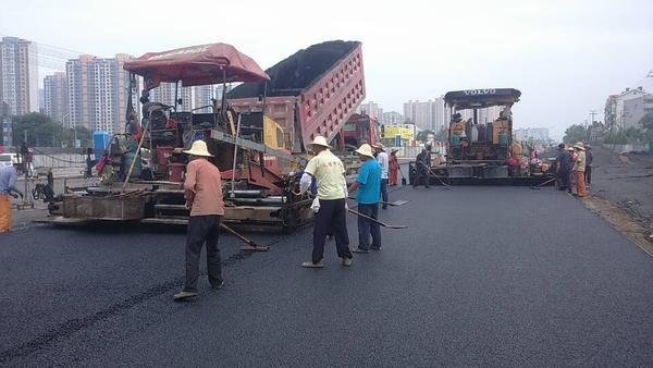 6月23日,二環南四標進行立交橋下快車道瀝青攤鋪??燔嚨赖酌鎸佑么至J紸c-25面積為12000平方,中面層用中粒式Ac-16面積為14300平方。攤鋪前攤鋪項目部提前計劃,合理安排,共組織4臺攤鋪機,2臺壓路機;攤鋪過程中現場施工人員緊密配合,加強對每一環節檢測控制與管理,保證了攤鋪質量。預計到26日完成此次攤鋪任務。