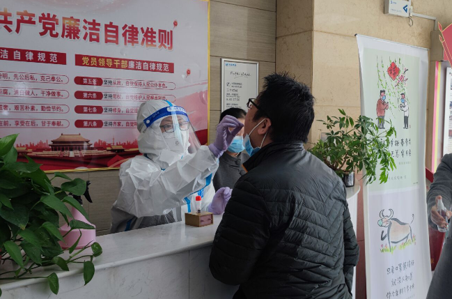 自11月30日起,隨著解除封控回到基地上班的職工陸續(xù)增加,有職工提到自己居住地核酸檢測時間結(jié)束的早,很怕耽誤了檢測,無法按時上班。分公司后勤保障組組長馬婕立刻多方打聽,詳細(xì)詢問,反復(fù)溝通,終于得到華山街道辦事處的回復(fù),可以上門對核酸檢測進(jìn)行培訓(xùn)和指導(dǎo)。很快,由小組成員李小嬌、張文鳳和物業(yè)公司工作人員組成的臨時核酸檢測點籌備完成。